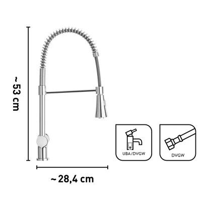 Für einen angenehm weichen Wasserstrahl sorgt die Mischdüse der Küchenarmatur. Im Kern befindet sich eine hochwertige Kartusche mit keramischen Dichtscheiben. Die verchromte Oberfläche lässt die Armatur in deiner Küche glänzen. Damit du bei der Montage nicht unnötig Zeit verschwenden musst, legen wir der Armatur alles an Material bei, das du dafür brauchst.