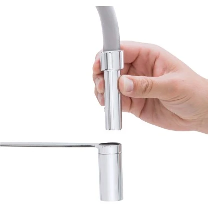 Gästen zeigst du als erstes am liebsten deine neue Küchenarmatur? Die baliv Küchenarmatur KI-1331 ist ein echter Hingucker in deinem Wohn(t)raum. Der hohe Auslauf in grau-matter Optik ist ein toller Kontrast zur Oberfläche der querverlaufenden Verbindung von Auslauf und Brause. Seitlich befindet sich der Hebel. Eine gerade Verbindung von Auslauf und Brause sorgt für eine extra Portion Stil. Das Spülbecken reinigst du ganz einfach mit dem Auslauf der Armatur. Der flexible Schlauch lässt sich aus der Verankerung lösen. Mit einem Spielraum von 360° erleichtert er dir die Reinigung ungemein. So geht dir das Reinigen des Spülbeckens oder der Abwasch von großen Gefäßen leicht von der Hand.