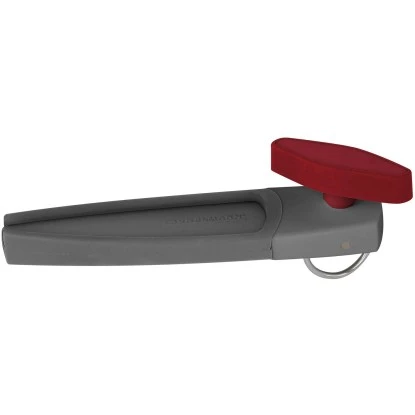Der Dosenöffner ist mit rotem Griff und grauem Drehhebel oder grauem Griff und rotem Drehhebel erhältlich.