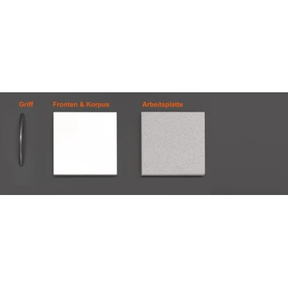 Lieferumfang: Front- und Korpusmuster 16 mm stark, Arbeitsplattenmuster 0,8 mm stark, moderner Bügelgriff