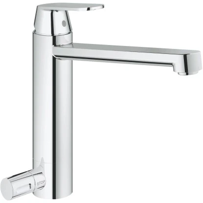 Die Grohe Einhand-Spültischbatterie Eurosmart Cosmopolitan vereint zeitgenössisches Design mit bewährter Technologie. Die hochwertige und raffiniert konzipierte Spültischarmatur ist mit einem integrierten Absperrventil ausgestattet, sodass Sie das Wasser für Ihre Geschirrspülmaschine einfach abstellen können, wenn dies notwendig ist.