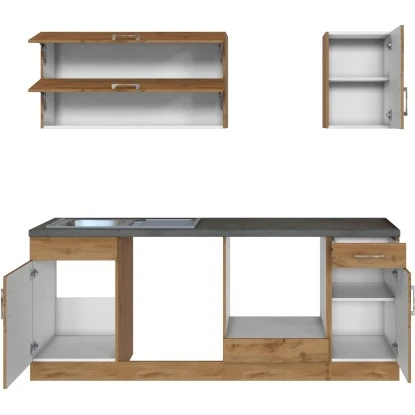 Die Held Möbel Küchenzeile Sorrento misst ca. B x H x T 210 cm x 200 cm x 60 cm und verfügt über eine 38 mm CPL-Arbeitsplatte mit Postformingkante.