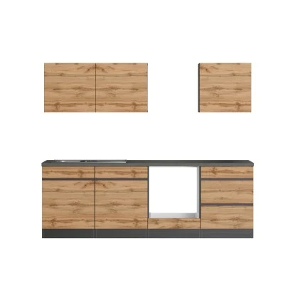 Die Küchenzeile Turin von Held Möbel mit hochwertigen MDF-Fronten begeistert optisch durch die klaren Linien sowie die zweifarbige Gestaltung. Da die Schränke in zwei Farbkombinationen verfügbar sind, können Sie die Küche im Mix-and-Match Stil erweitern. Zusätzliche Akzente werden durch die 38 mm starke Arbeitsplatte im Beton Dekor gesetzt.