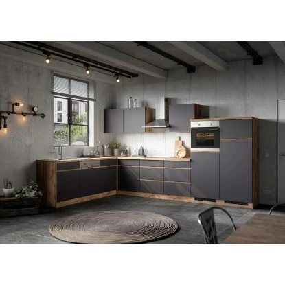 Mit dem Ofenumbauschrank Turin von Held Möbel mit hochwertigen MDF-Fronten können Sie ihre Küchenzeile perfekt ergänzen. Hinter der Drehtür befinden sich drei Ablagefächer für zusätzlichen Stauraum. Optisch begeistert der Schrank durch die klaren Linien sowie die zweifarbige Gestaltung. Da der Schrank in zwei Farbkombinationen verfügbar ist, können Sie die Küche im Mix-and-Match Stil einrichten.