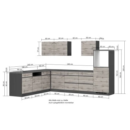Held Möbel Winkelküche Turin 300 X 240 Cm Wotaneiche-Graphit Ohne E-Geräte