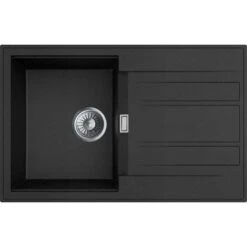 Die Einbauspüle Piatto von Miló passt ideal in die moderne Küche. Sie hat eine eckige Form und besitzt die Maße 78 cm x 50 cm x 21,5 cm (H x B x T). Das Becken hat die Maße 34 cm x 21,5 cm (B x T). Dazu verfügt die Spüle über eine Abtropffläche, auf der gespültes Geschirr abgestellt werden kann. Qualitativ überzeugt sie durch die Fertigung aus einem Granitverbundwerkstoff. Dabei ist die Einbauspüle robust sowie hitzebeständig. Ihre Optik ist durch eine attraktive Farbgestaltung in Graphit bestimmt.