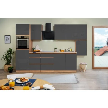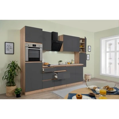 Respekta Küchenzeile GLRP320HESG Grifflos 320 Cm Grau Hochglanz-Sonoma Eiche