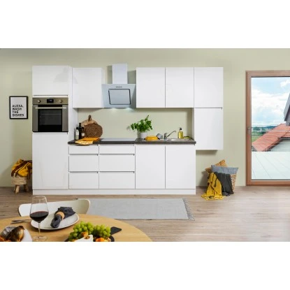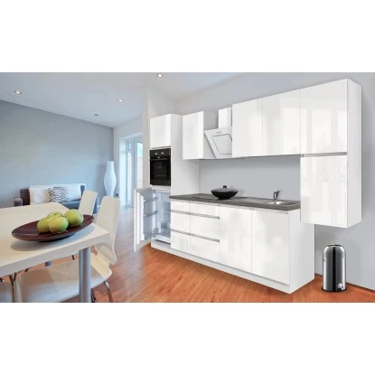 Respekta Küchenzeile GLRP320HWW Grifflos 320 Cm Weiß Hochglanz