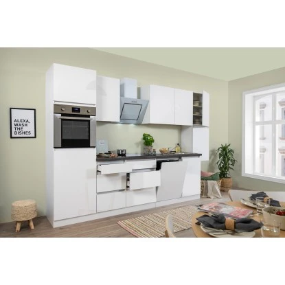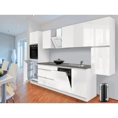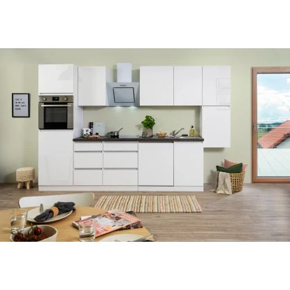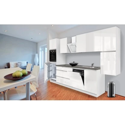 Respekta Küchenzeile GLRP330HWW Grifflos 330 Cm Weiß Hochglanz