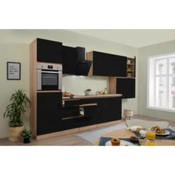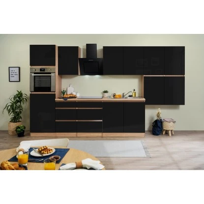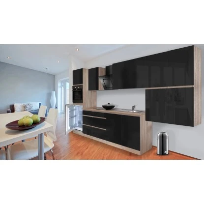 Respekta Küchenzeile GLRP370HESS Grifflos 370 Cm Schwarz Hochglanz-Sonoma Eiche