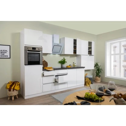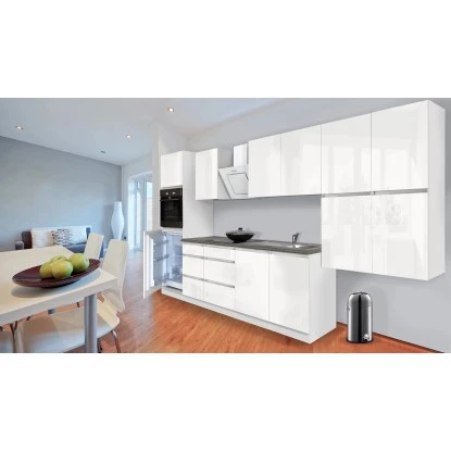 Respekta Küchenzeile GLRP370HWW Grifflos 370 Cm Weiß Hochglanz
