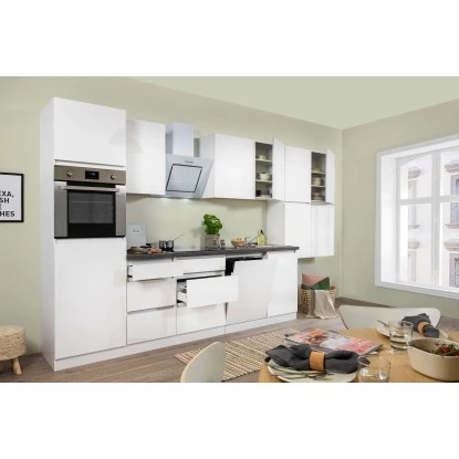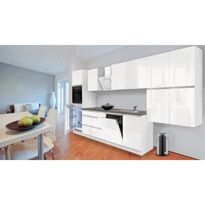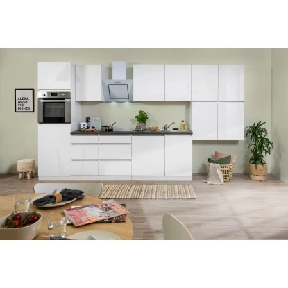 Respekta Küchenzeile GLRP380HWW Grifflos 380 Cm Weiß Hochglanz