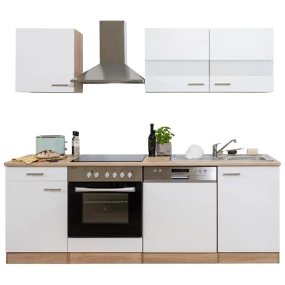 Respekta Küchenzeile KB220ESWC 220 Cm Weiß-Eiche Sägerau Nachbildung Glänzend