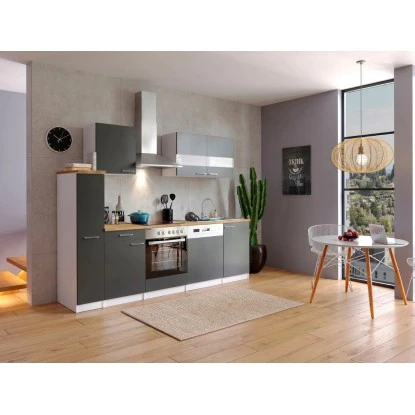 Respekta Küchenzeile KB250WGC 250 Cm Grau-Weiß