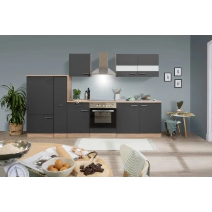 Respekta Küchenzeile KB300ESGC 300 Cm Grau-Eiche Sägerau Nachbildung