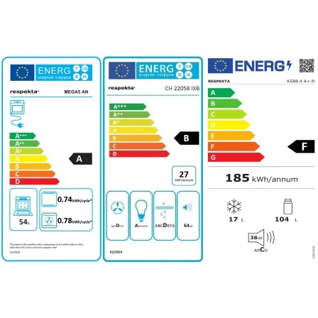Energieverbrauch /Zyklus: Konventionell: 0,74 kWh, Heißluft/Umluft: 0,78 kWh