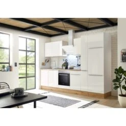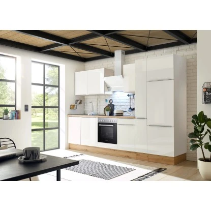 Die Respekta Küchenzeile Marleen ist in verschiedenen Farben erhältlich und schafft durch den Materialmix von Elementen in Holz- und Griffleisten in Aluminiumoptik ein modernes Design. Die Schränke bieten Ihnen viel Stauraum und schließen dank der Soft Close Funktion besonders geräuscharm. Unebenheiten im Boden gleichen Sie mit den höhenverstellbaren Füßen ganz einfach aus.