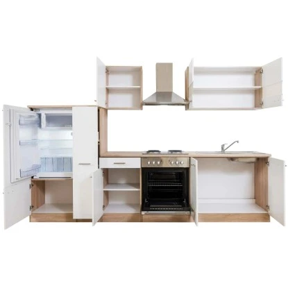 Die Respekta Küchenzeile ohne E-Geräte LBKB300ESW ist ideal, wenn Sie Ihre alten Elektrogeräte behalten möchten, aber trotzdem Ihrer Küche zu neuem Glanz verhelfen wollen. Aber auch für diejenigen, die Ihre Küche ganz individuell gestalten möchten, bietet diese Küchenzeile genug Freiraum zur Selbstverwirklichung. Des Weiteren sind alle Scharniere mit einer komfortablen Soft-Close-Funktion ausgestattet.