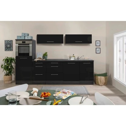 Respekta Premium Inselküche 280 Cm Schwarz Hochglanz-Eiche Grau