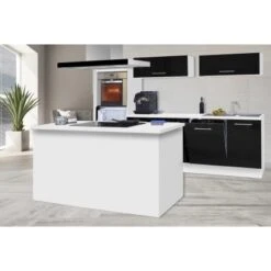 Respekta Premium Inselküche 280 Cm Schwarz Hochglanz-Weiß