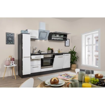 Respekta Premium Küchenzeile 250 Cm Weiß Hochglanz-Eiche Grau