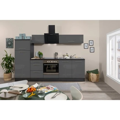 Respekta Premium Küchenzeile 270 Cm Grau Hochglanz-Eiche Grau