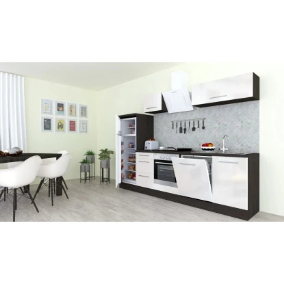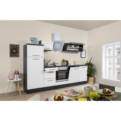 Respekta Premium Küchenzeile 280 Cm Weiß Hochglanz-Eiche Grau