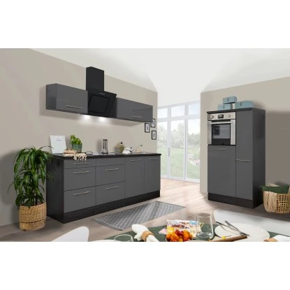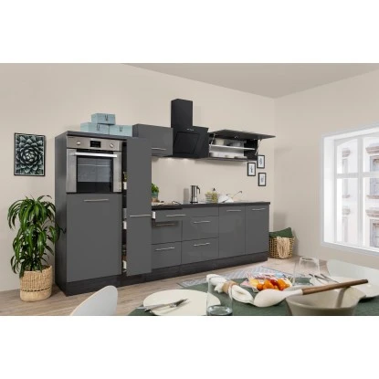 Respekta Premium Küchenzeile 300 Cm Hochbau Grau Hochglanz-Eiche Grau