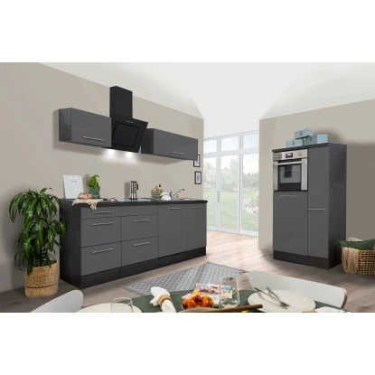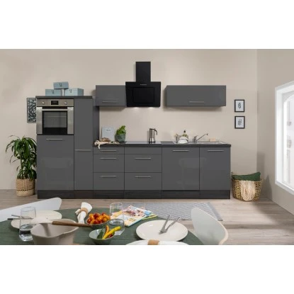 Respekta Premium Küchenzeile 310 Cm Hochbau Grau Hochglanz-Eiche Grau