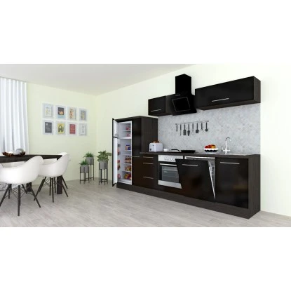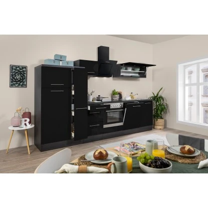 Respekta Premium Küchenzeile 310 Cm Schwarz Hochglanz-Eiche Grau