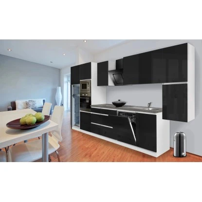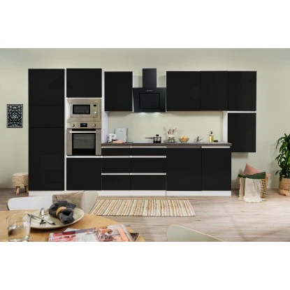 Respekta Premium Küchenzeile Grifflos 395 Cm Schwarz Hochglanz-Weiß