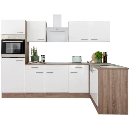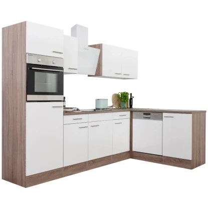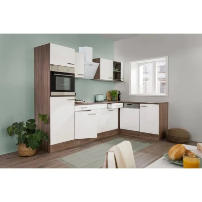 Respekta Winkelküche 280 Cm Weiß-Seidenglanz Eiche-York