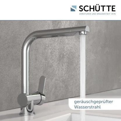 Die hochwertige Schütte Spülbeckenarmatur Rio setzt moderne Akzente in Ihrer Küche und ist garantiert ein Hingucker. Die Standarmatur mit hohem Bogenauslauf und 360° Schwenkbereich sorgt für einen komfortablen Aktionsradius. Dank der Einhebel-Bedienung haben Sie mehr Bewegungsfreiheit am Spülbereich. Die Hochdruck-Armatur ist mit einer geräuscharmen, auswechselbaren Kartusche mit langlebigen, keramischen Dichtungen zur präzisen Regelung der Durchflussmenge und der Wassertemperatur ausgestattet. Dank der Cold-Start-Funktion wird bei Hebel-Mittelstellung nur der Zufluss von Kaltwasser ermöglicht und Sie sparen Energie. Zudem verfügt die Armatur über einen Kalt- und einen Warmwasseranschluss und wird inklusive zwei Flexschläuche geliefert. Strenge Qualitätskontrollen und hochwertige Materialien, die den Bestimmungen der deutschen Trinkwasserverordnung entsprechen, gewährleisten hohe Sicherheit und beste Wasserqualität. Das mitgelieferte Montageset und die leicht verständliche Montageanleitung garantieren eine schnelle und einfache Installation.