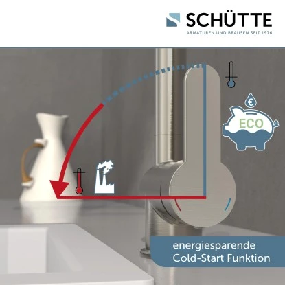 London Spültischarmatur Niederdruck mit Herausziehbarem Auslauf Edelstahloptik. Bei diesem Wasserhahn handelt es sich um eine Niederdruckarmatur, die ausschließlich bei drucklosen Untertischgeräten/Kleinspeichern zum Einsatz kommt. Sie wird mit drei flexiblen Anschlussschläuchen geliefert. Ressourcenschonend handeln auch im Kleinen. Dann ist diese Einhebel-Mischbatterie mit Cold-Start Technik genau richtig, denn sie gewährt bei senkrechter Position des Bedienhebels nur den Zufluss von Kaltwasser. Bei vielen Waschgängen völlig ausreichend.