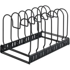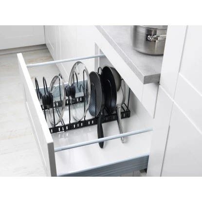 Ordnung macht Laune! Der moderne Geschirrständer ermöglicht eine platzsparende und übersichtliche Aufbewahrung von Pfannen, Deckeln, Backformen, Geschirr, Auflaufformen, Schneidebrettern, etc. in unterschiedlichen Größen.