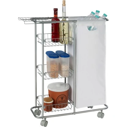 Der Wenko Sammelwagen Slim mit 3 Etagen und einem abnehmbaren Sack bietet viele Funktionen für Küche und Haushalt. In der Küche können auf 3 Etagen Lebensmittel und Utensilien abgelegt werden. Durch die herausziehbare Ablage finden sogar lange Flaschen, wie Essig- oder Ölflaschen in der obersten Etage Platz.